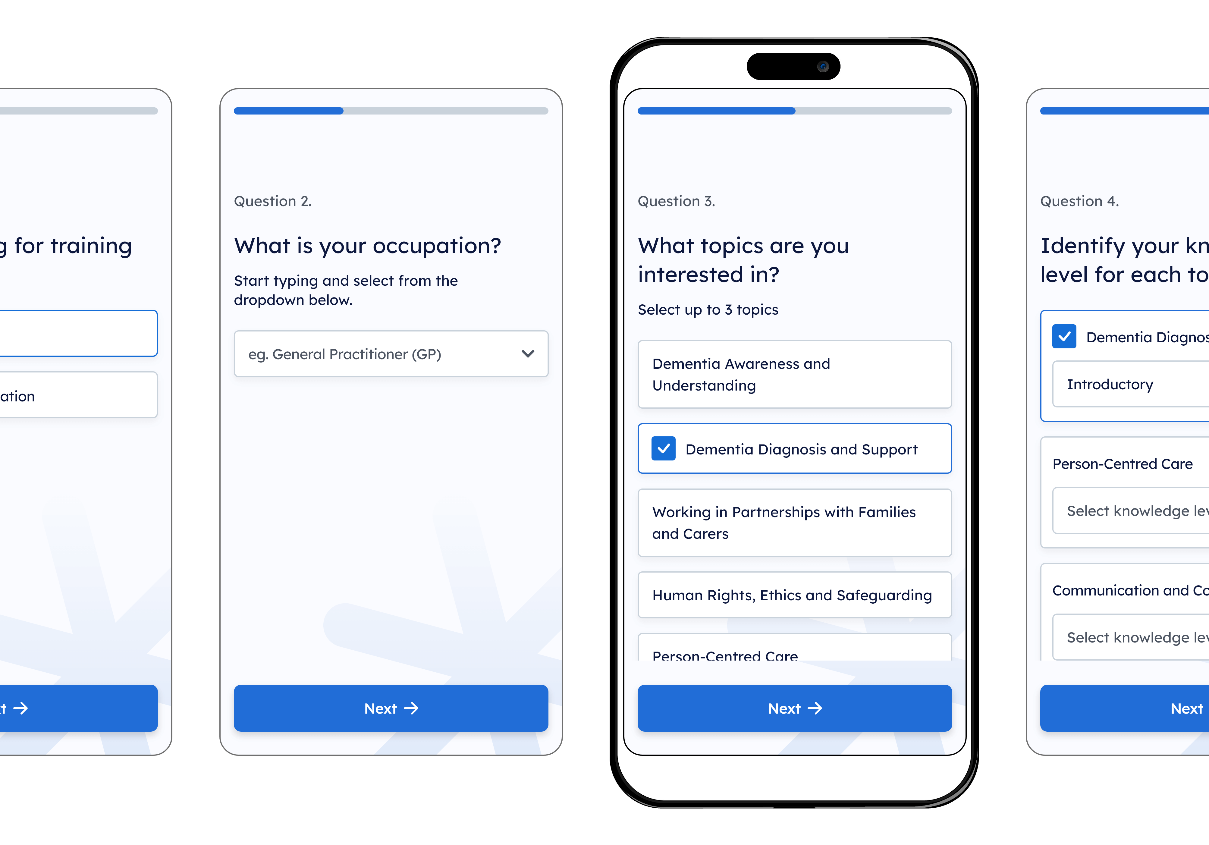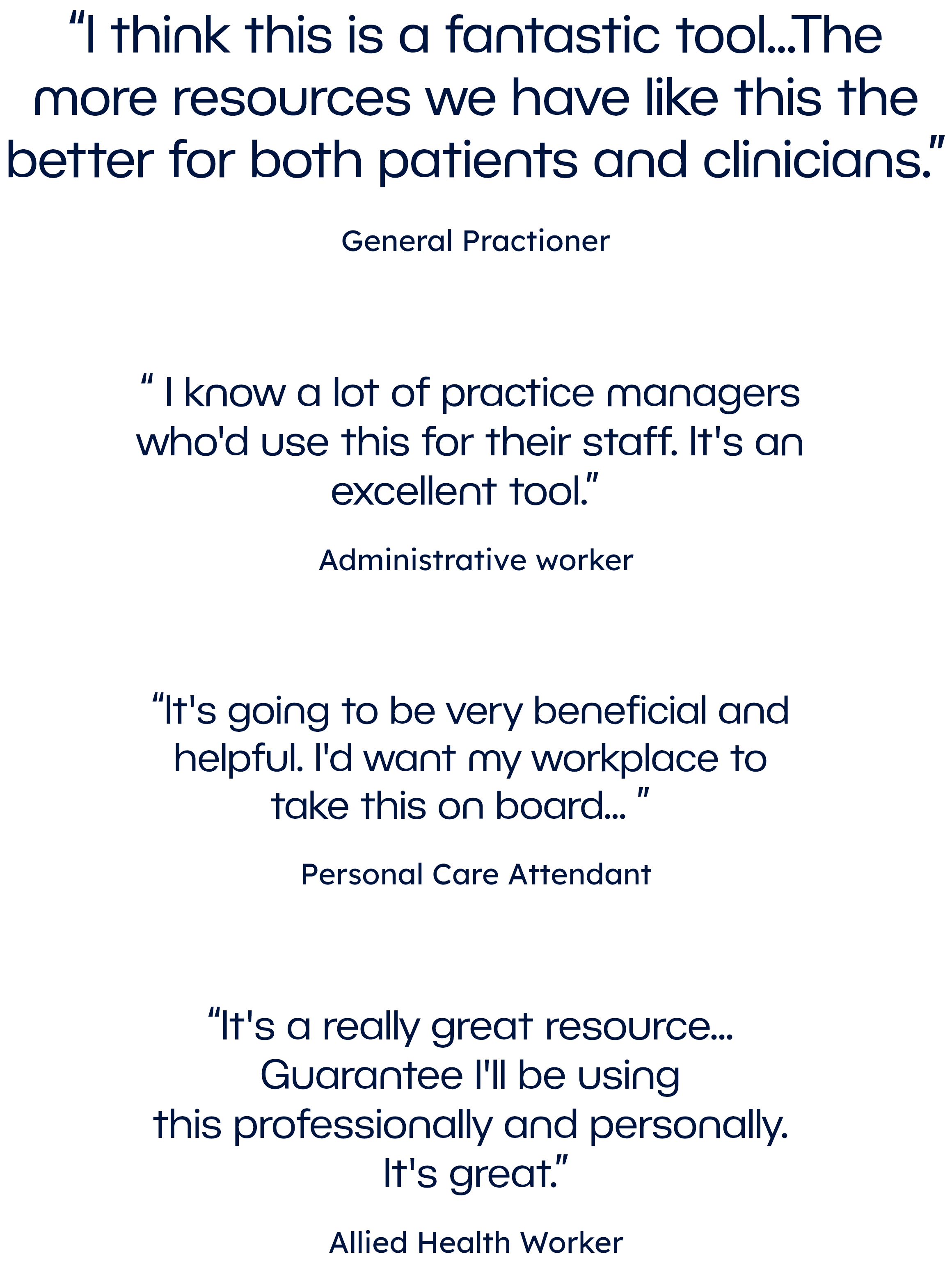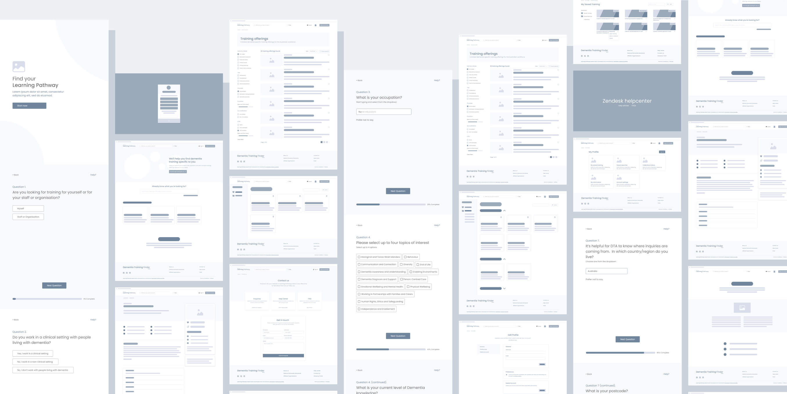 As of writing (Feb 2024), the project's design phase has concluded, and it has been handed over to DTA's technical team for implementation & maintenance before the launch scheduled for July 2024. The platform is set to include training and resources from leading providers like DTA & Dementia Australia. All quotations are from our final user testing round externally facilitated by U1 Group . The work showcased below represents our designs for the beta prototype.