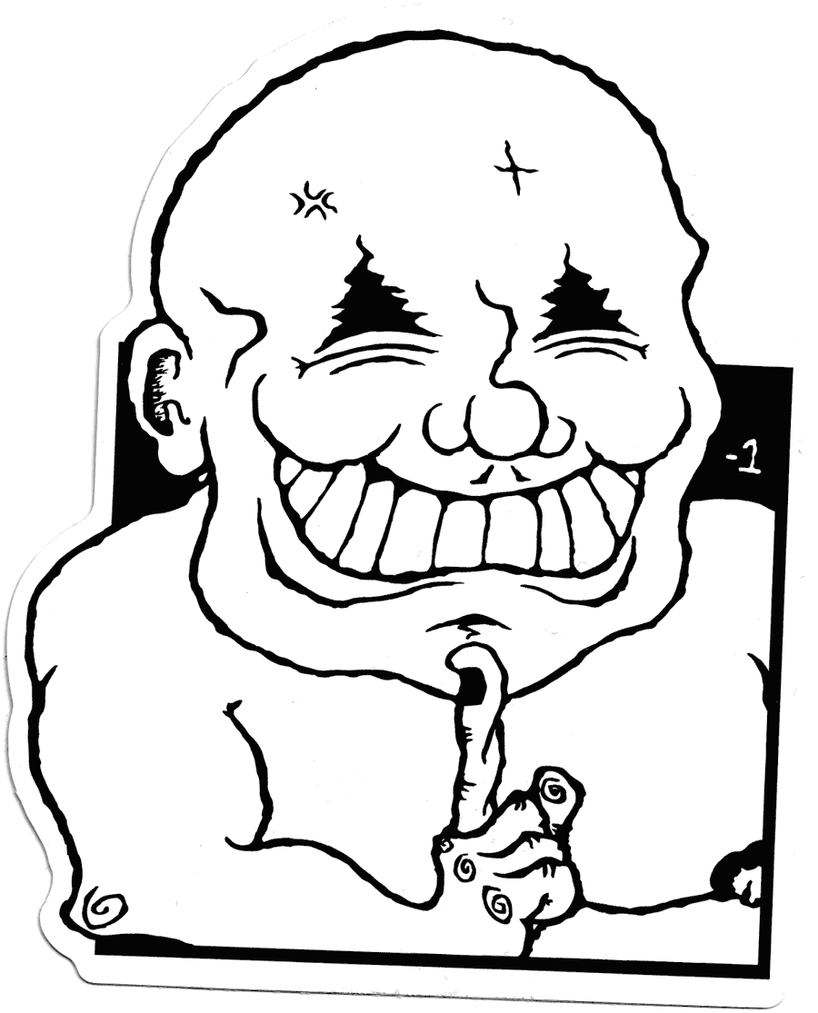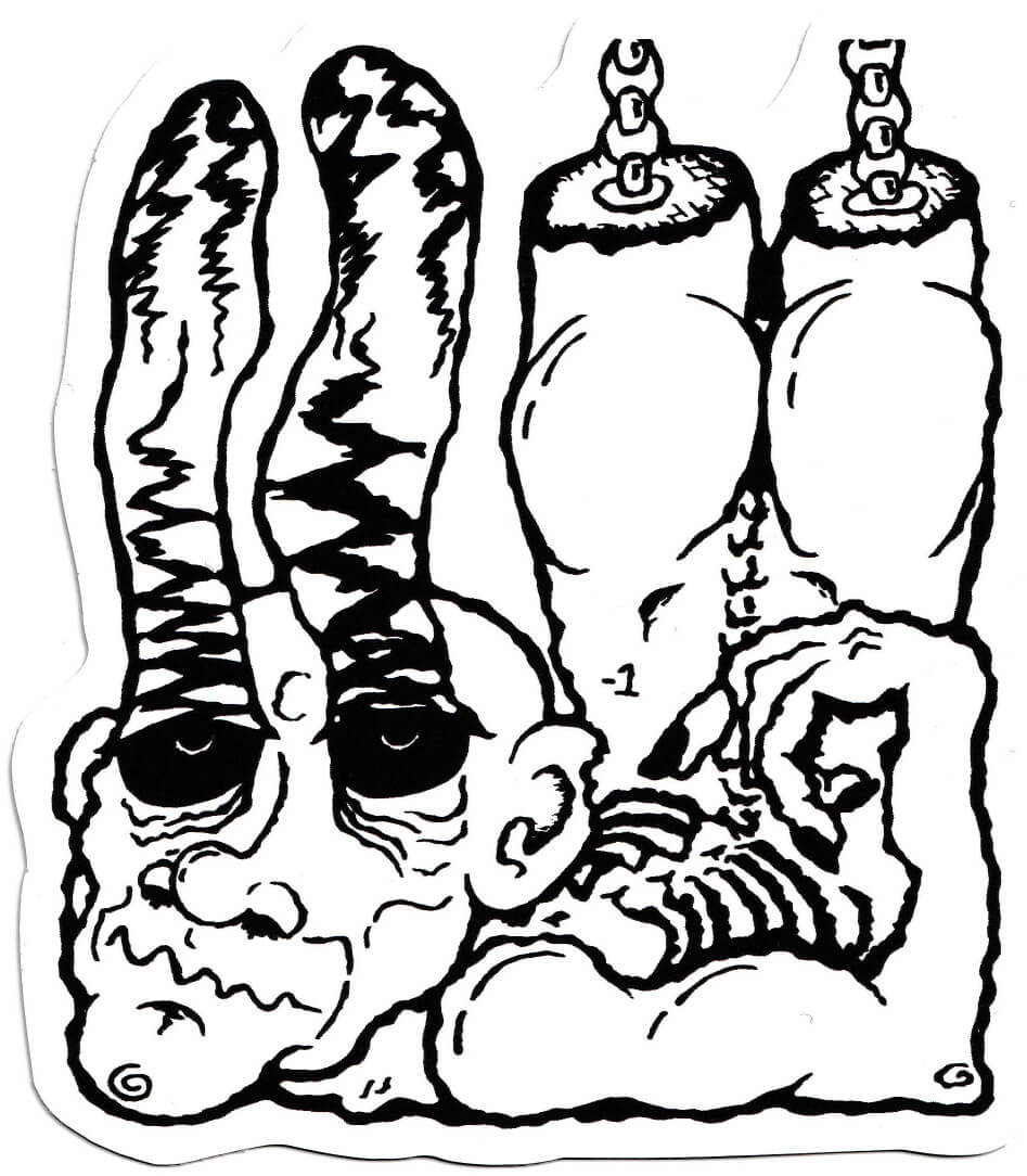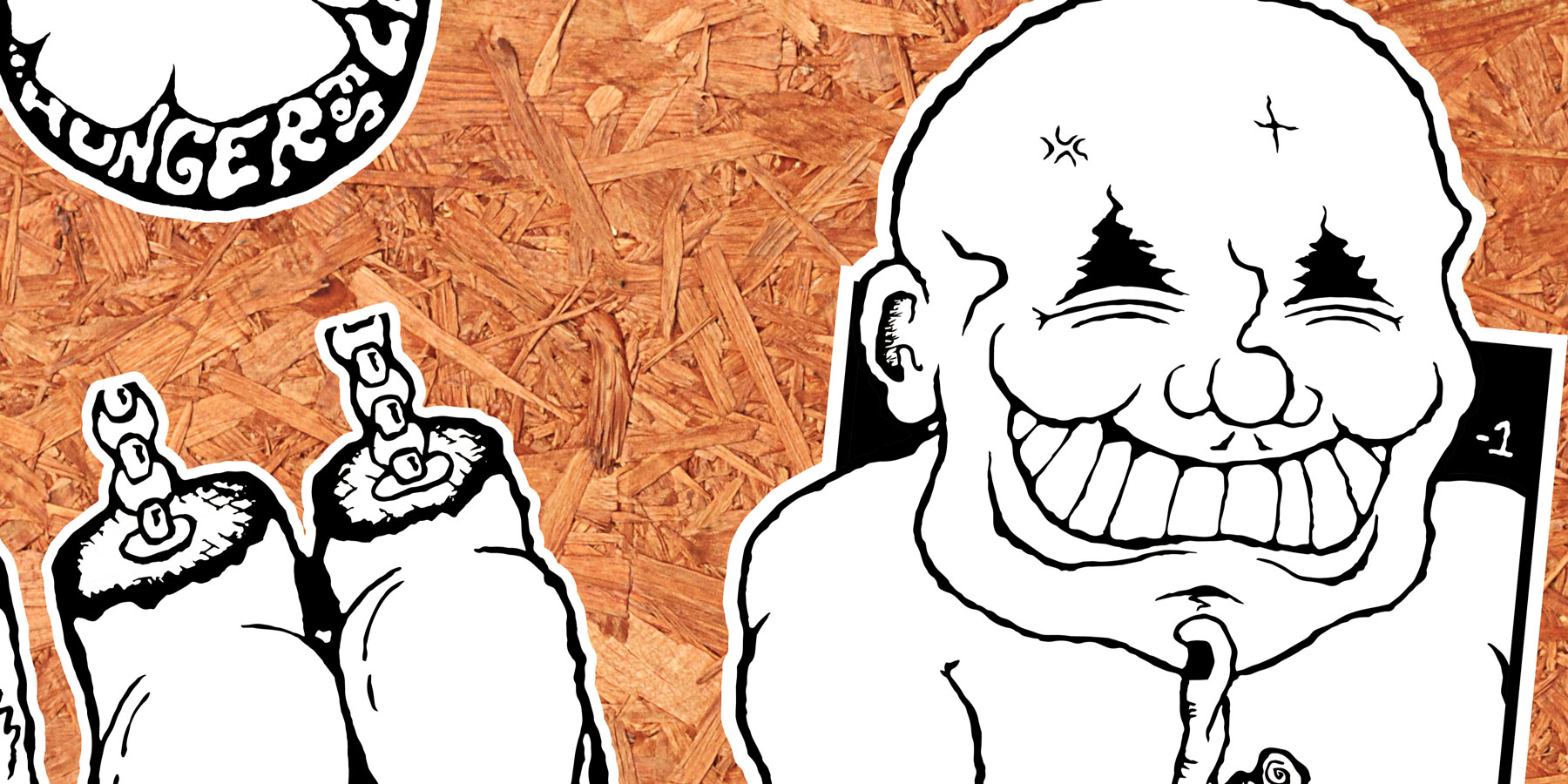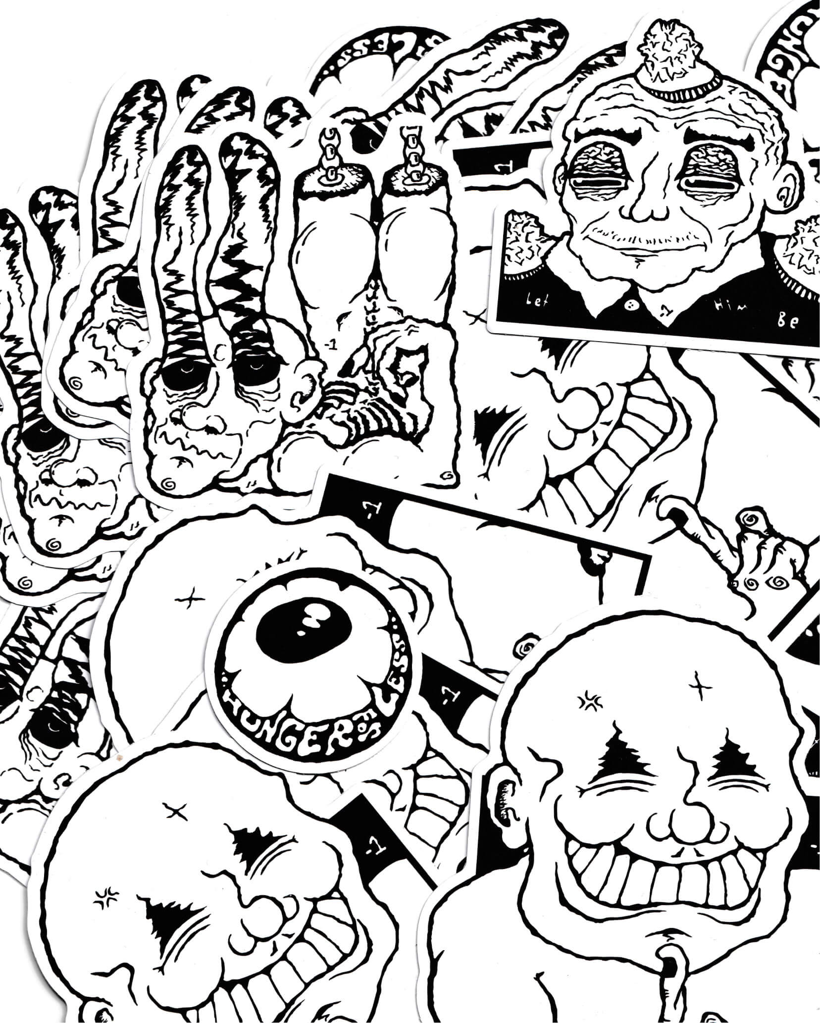 Drawing from my ever-growing compendium of off-kilter characters within the "inks" project, “Slaps!” sees me dip into the world of print production. Under the 'Minus 1' moniker, a small run of vinyl stickers were produced, with select designs being made into wheat paste fly posters.